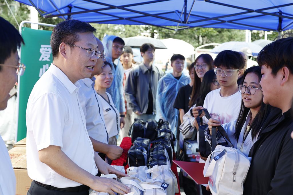 迎新首日,学校领导鲁书喜、金铮、席会平、张虽栓前往迎新现场检查迎新工作、关心慰问参与迎新的师生和工作人员,对迎新工作的有序开展给予充分肯定,对大家的辛勤付出表示感谢。校长鲁书喜认真听取各学院(部)迎新工作汇报,详细了解报到进展和特色活动,并强调迎新工作是新生到校的第一印象,各学院(部)要在保障流程高效便捷的基础上,进一步突出人文关怀,为新生和家长提供全面、热情、周到的帮助,切实让新生尽快适应环境、融入集体。