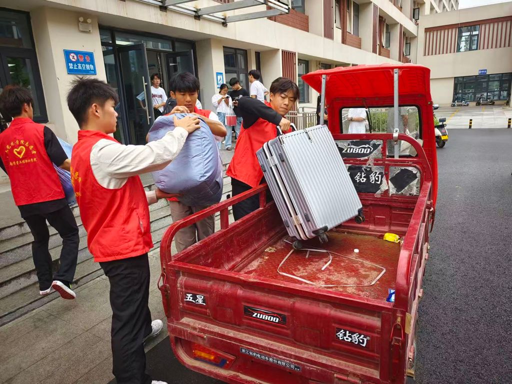 志愿者们忙碌穿梭在校园中,为新生指引道路、搬运行李,以灿烂的笑脸、热情的问候和周到的服务,给新生和家长留下了美好的印象。