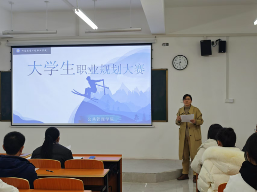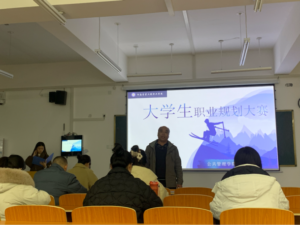 为加强大学生生涯教育和就业指导,增强大学生职业规划意识,指导其及早做好就业准备,促进高校毕业生高质量充分就业。结合学院实际,公共管理学院于2024年12月10日下午在舞钢校区致知楼406教室举办大学生职业规划大赛。学院书记葛长发、副书记李宏源、副院长张士红、副院长黄昕、学生管理科科长娄伟刚、团总支书记陶净飞、就业专干史雅君老师以及部分辅导员老师参加本次大赛。