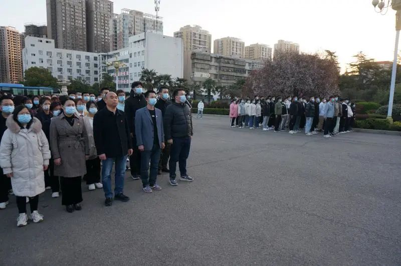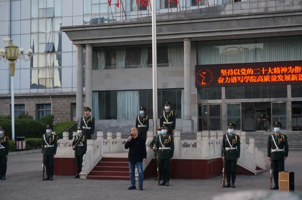 2023年3月13日,公共管理学院组织师生在教学实验楼前举行升国旗仪式。