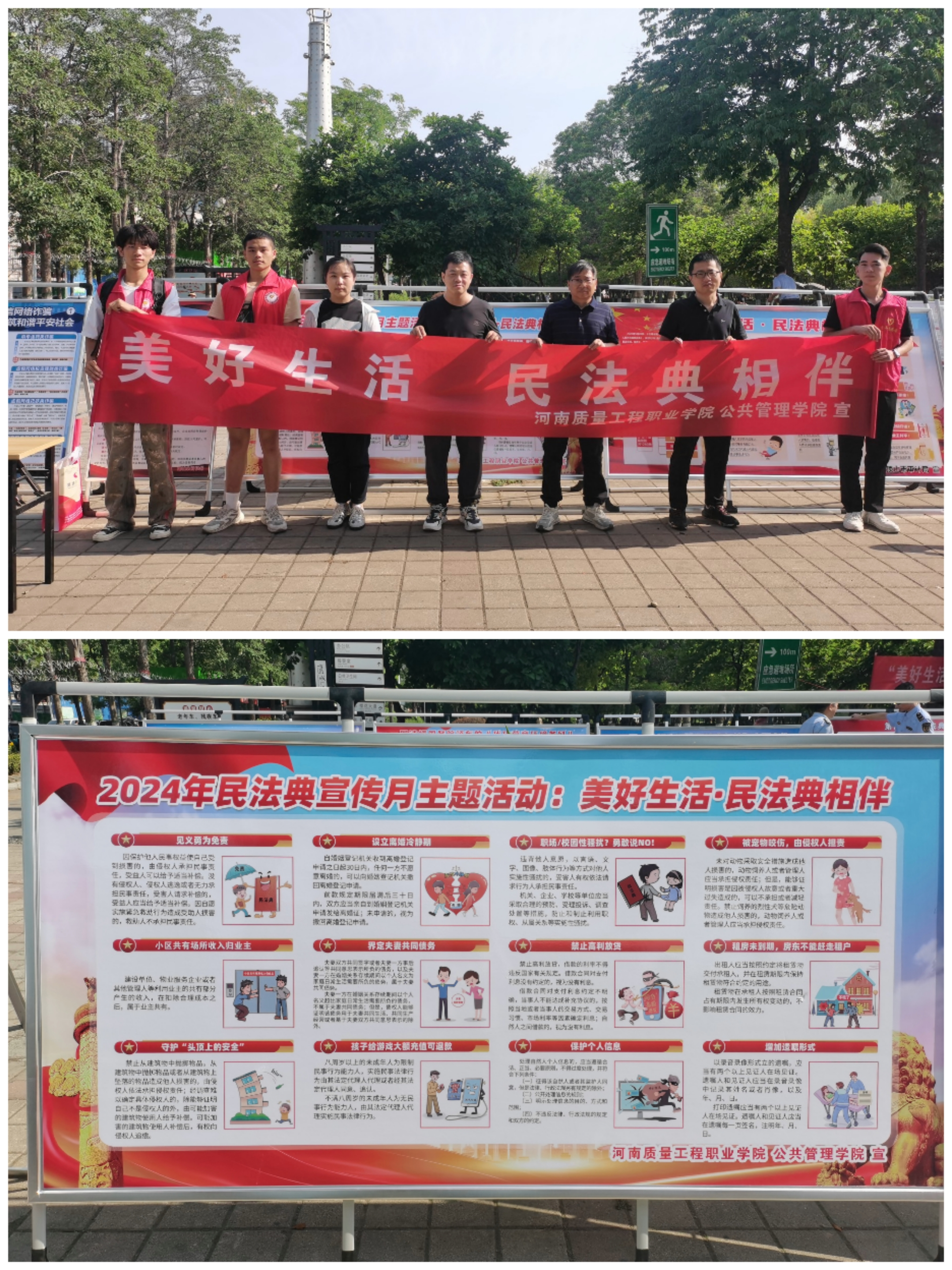 同时,tyc234cc太阳成集团公共管理学院的法学教师们积极开展《民法典》进校园活动。开展法治宣讲、提供法律服务,通过具体案例以案释法,引导大学生们学习并宣传《民法典》,使他们养成善用法治思维和法治方式化解矛盾纠纷的习惯。