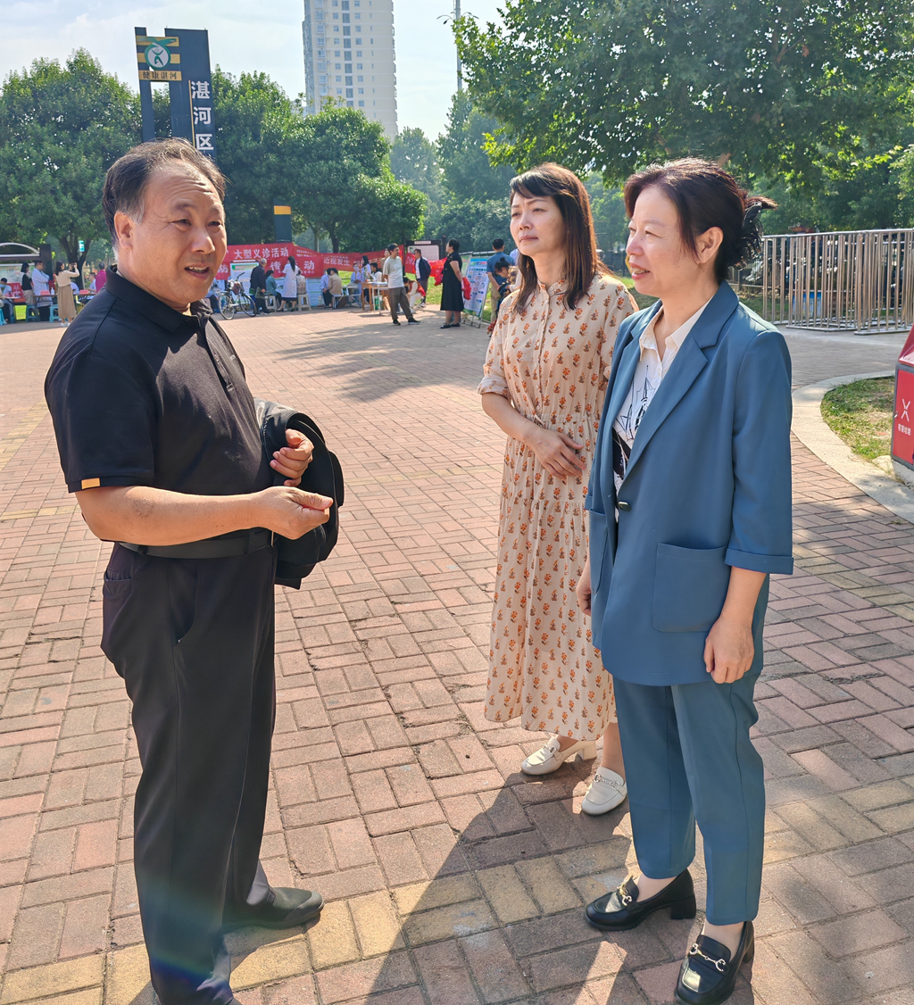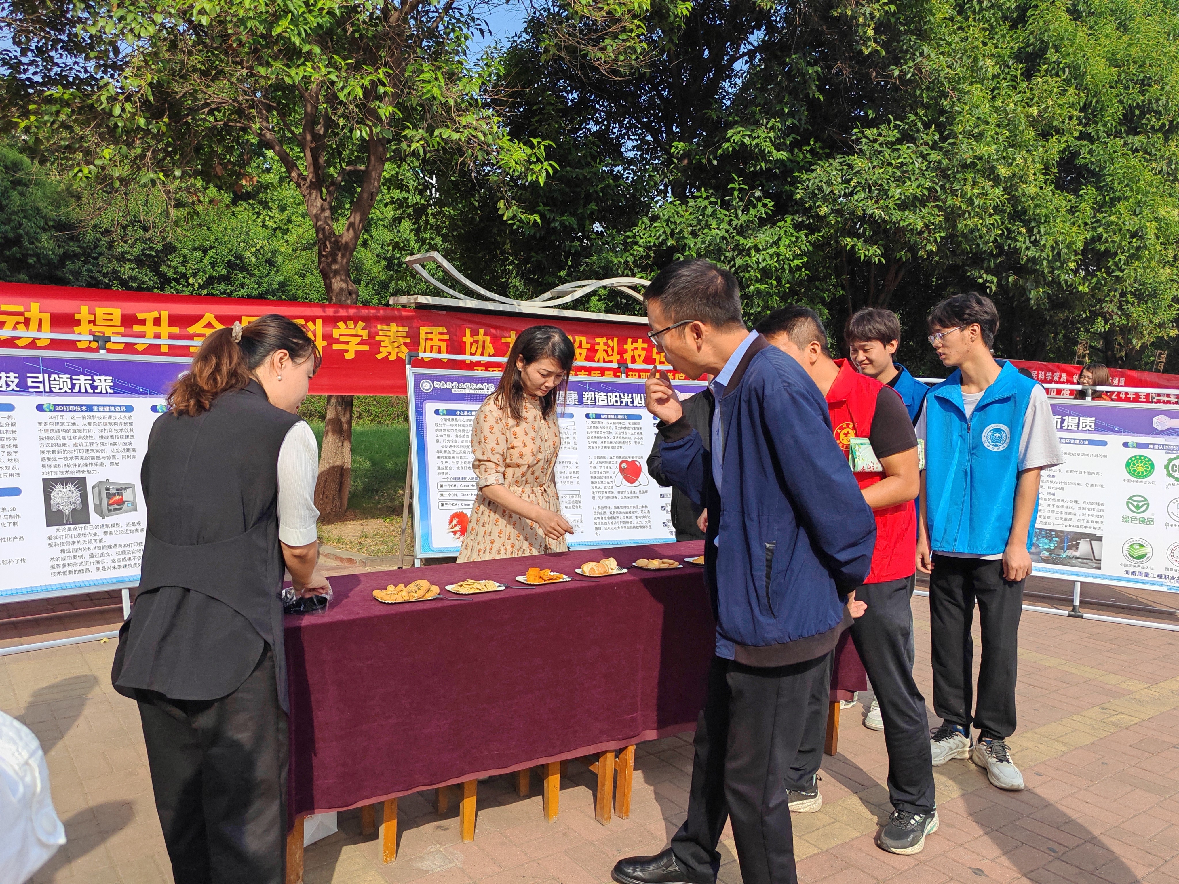 平顶山市科学技术协会副主席程成、科学普及部部长张现会和湛河区科学技术协会书记赵晓龙等到我院展区现场参观、指导,学院副院长席会平详细介绍活动开展情况。