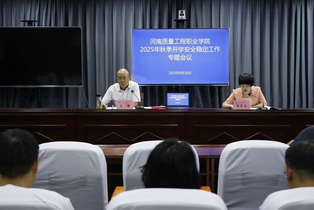 8月26日上午,学校在明德楼视频会议室召开2025年秋季学期开学安全稳定工作专题会议。党委委员、副校长金铮出席会议并讲话,学校有关部门、二级学院(部)负责人参加会议。会议由校办公室主任郭秀丽主持。