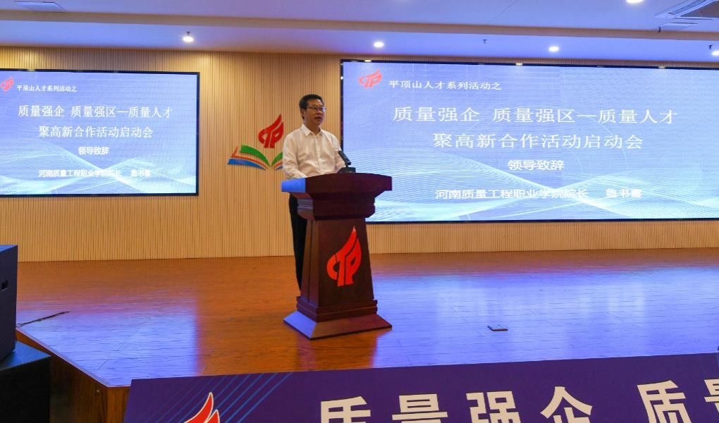 9月18日下午,平顶山人才系列活动之“质量强企 质量强区——质量人才聚高新”合作活动启动会在高新火炬园举行。平顶山市人民政府副市长段志广出席活动,tyc234cc太阳成集团院长鲁书喜,平顶山市市场监督管理局党组书记、局长徐渊,高新区党工委书记孙国权,市科技局相关负责同志参加活动。活动由高新区党工委副书记、管委会主任齐瑞锋主持。