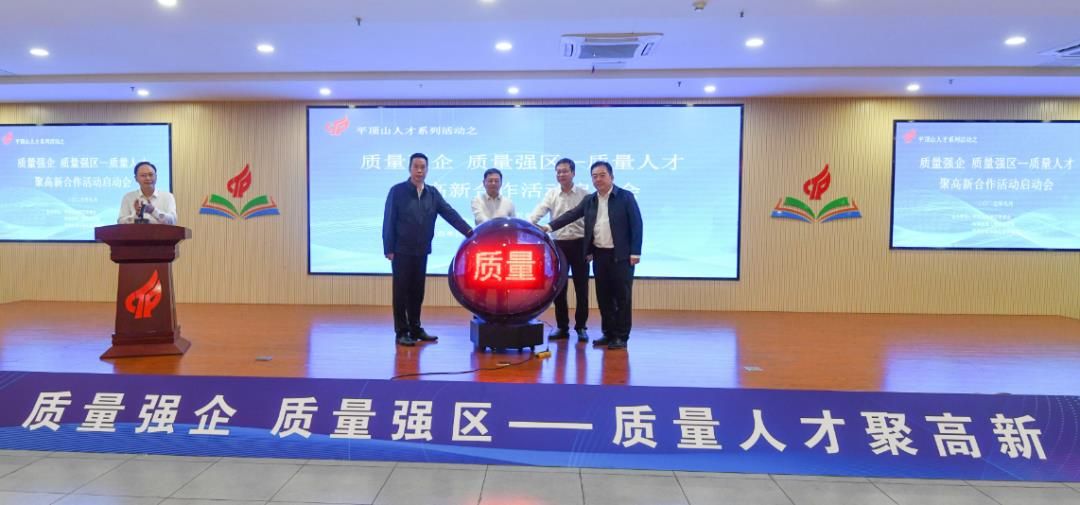 活动最后,段志广、鲁书喜、徐渊、孙国权共同按下启动球,宣告质量强企 质量强区——质量人才聚高新合作活动正式启动。