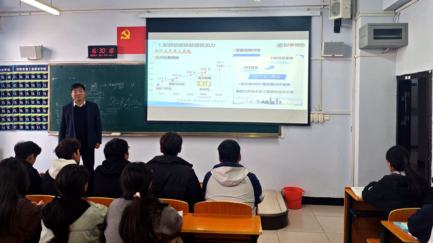10月27日下午,学校党委委员、副校长张虽栓在致知楼4303教室,为食品与化工学院25级食品营养与健康班的同学讲授了题为《决胜“十四五” 奋发向前行》的形势与政策课。