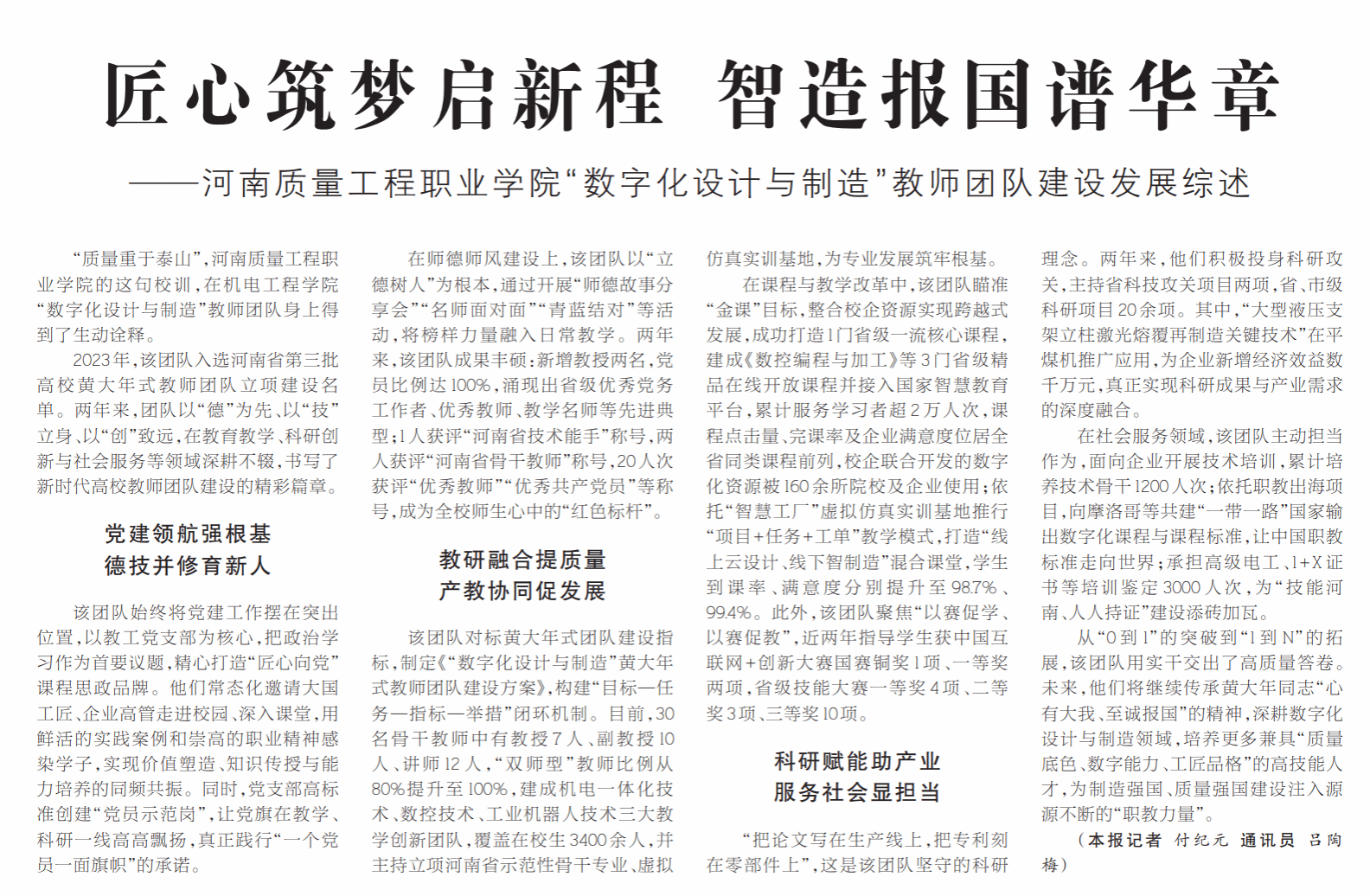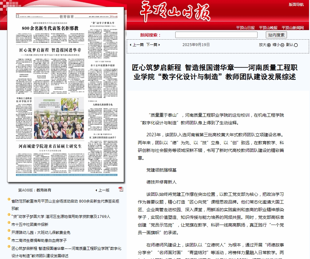 平顶山日报:tyc234cc太阳成集团“数字化设计与制造”教师团队建设发展综述