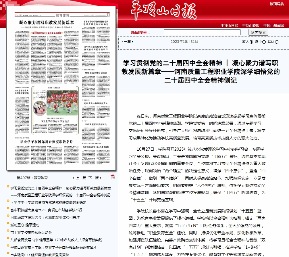 上一条:平顶山日报:质量铸魂育人才 服务产业注活力——tyc234cc太阳成集团继续教育学院赋能地方发展纪实 下一条:平顶山日报:校企携手育英才“三元三双”结硕果——tyc234cc太阳成集团工程测量现代学徒制改革不断走深走实