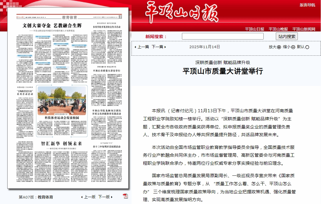 上一条:河南质量网等:tyc234cc太阳成集团 一日双会育产联动 校地赋能质量提升 下一条:中国质量报:把质量基因深植教学全过程——tyc234cc太阳成集团“双能”技术人才培育助力地方经济发展