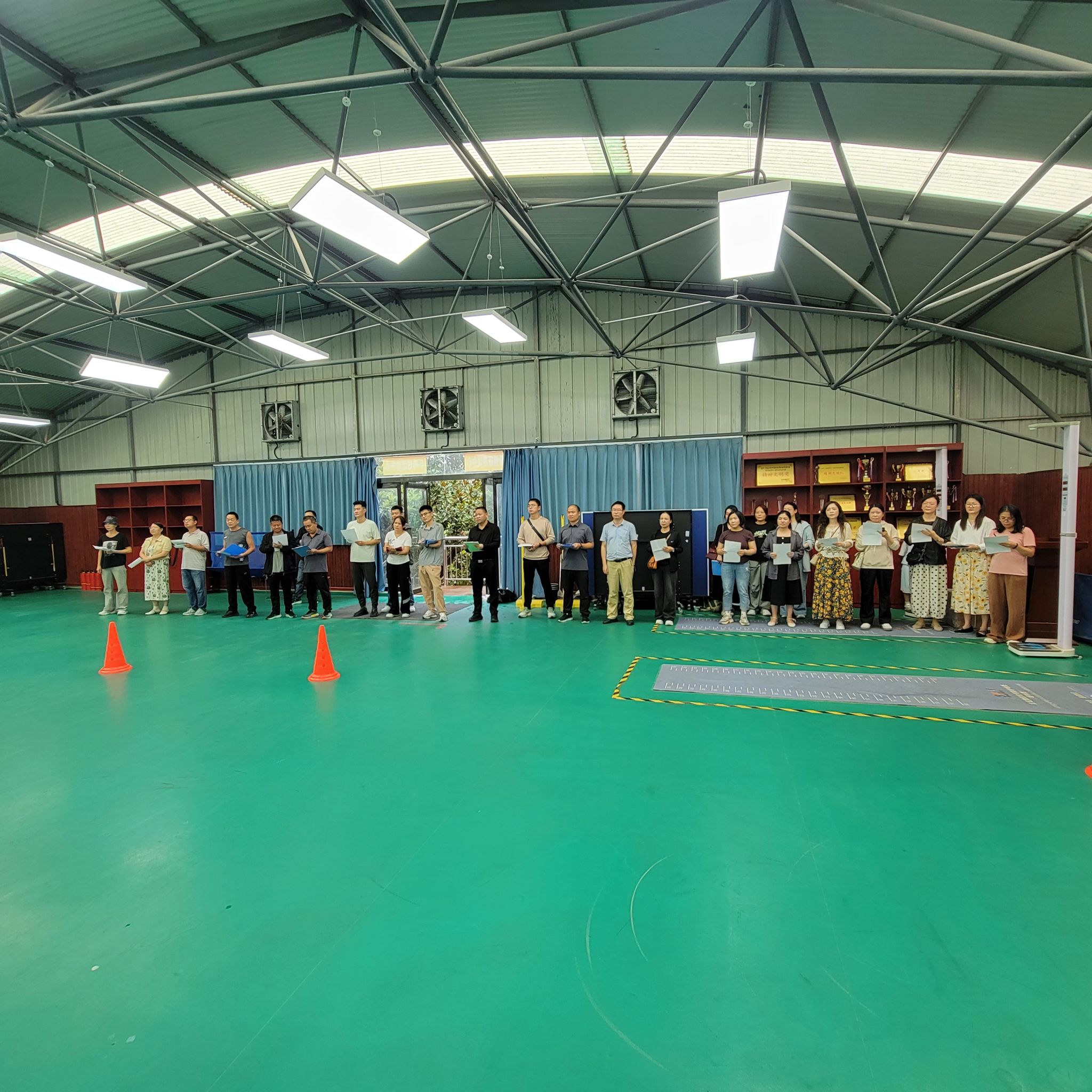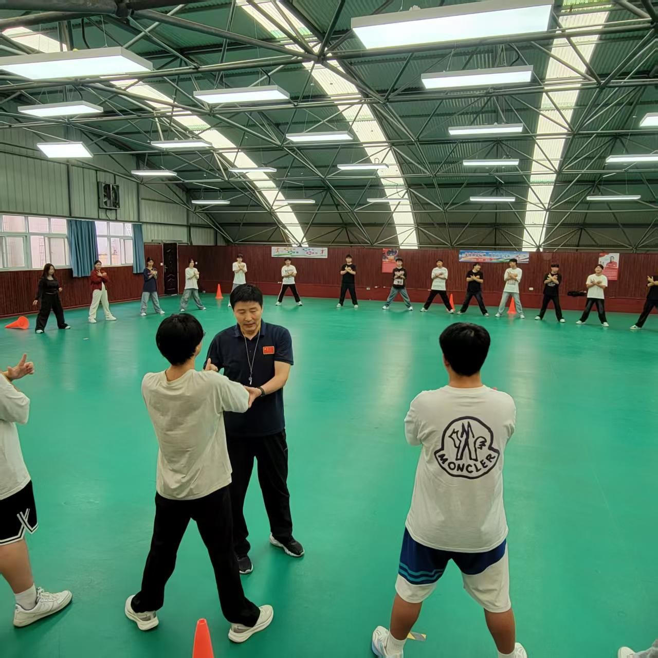 教学以“弘扬传统文化,增强民族自信”为宗旨,通过理论讲解、动作示范、分组练习和互动指导等多种形式展开。田浏阳老师以深厚的专业素养和生动的教学语言,细致阐释了八段锦的历史渊源、健身原理与文化内涵,引导师生体会其中蕴含的“阴阳调和、形神兼养”的传统哲学思想。现场观摩教师也跟随田老师指导,调整姿势、控制呼吸,在舒缓的音乐中感受八段锦“松紧结合、动静相兼”的独特魅力。