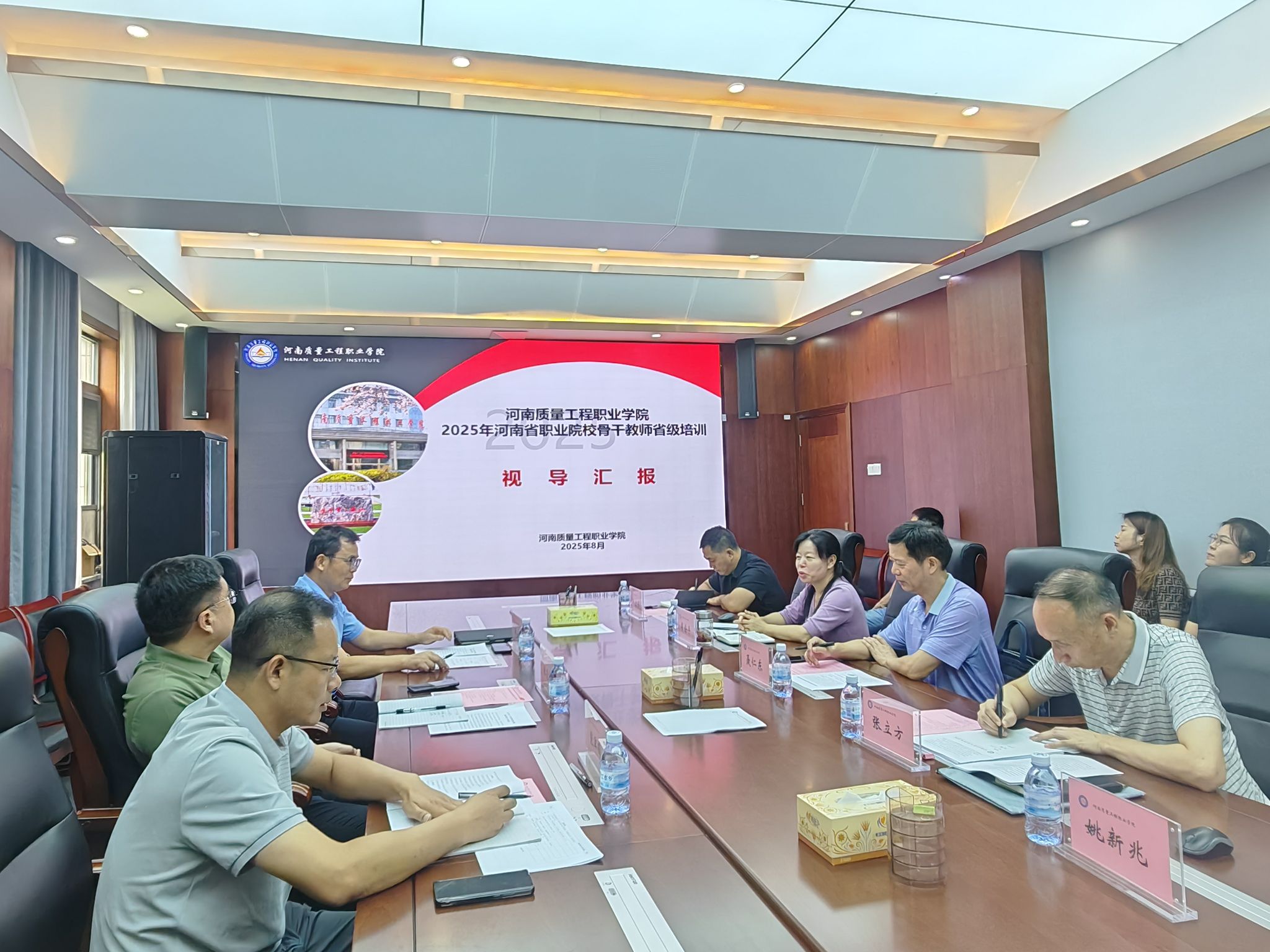 8月15日上午,河南省职业院校教师省级培训视导组一行莅临我校检查指导工作。视导组由河南测绘职业学院校长张凌杰任组长,成员有河南水利与环境职业学院信息工程学院院长张军锋、郑州旅游职业学院人文科技学院院长黄安定。