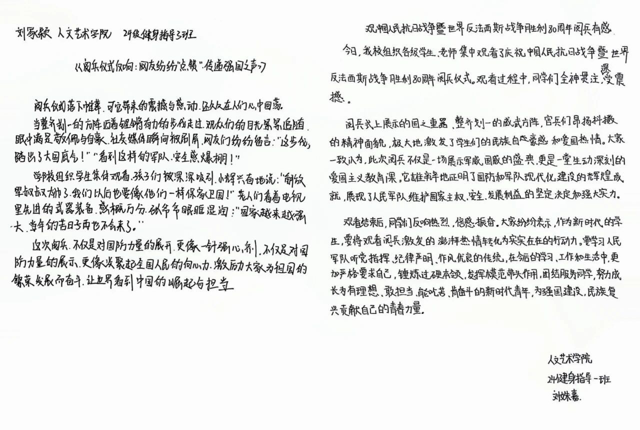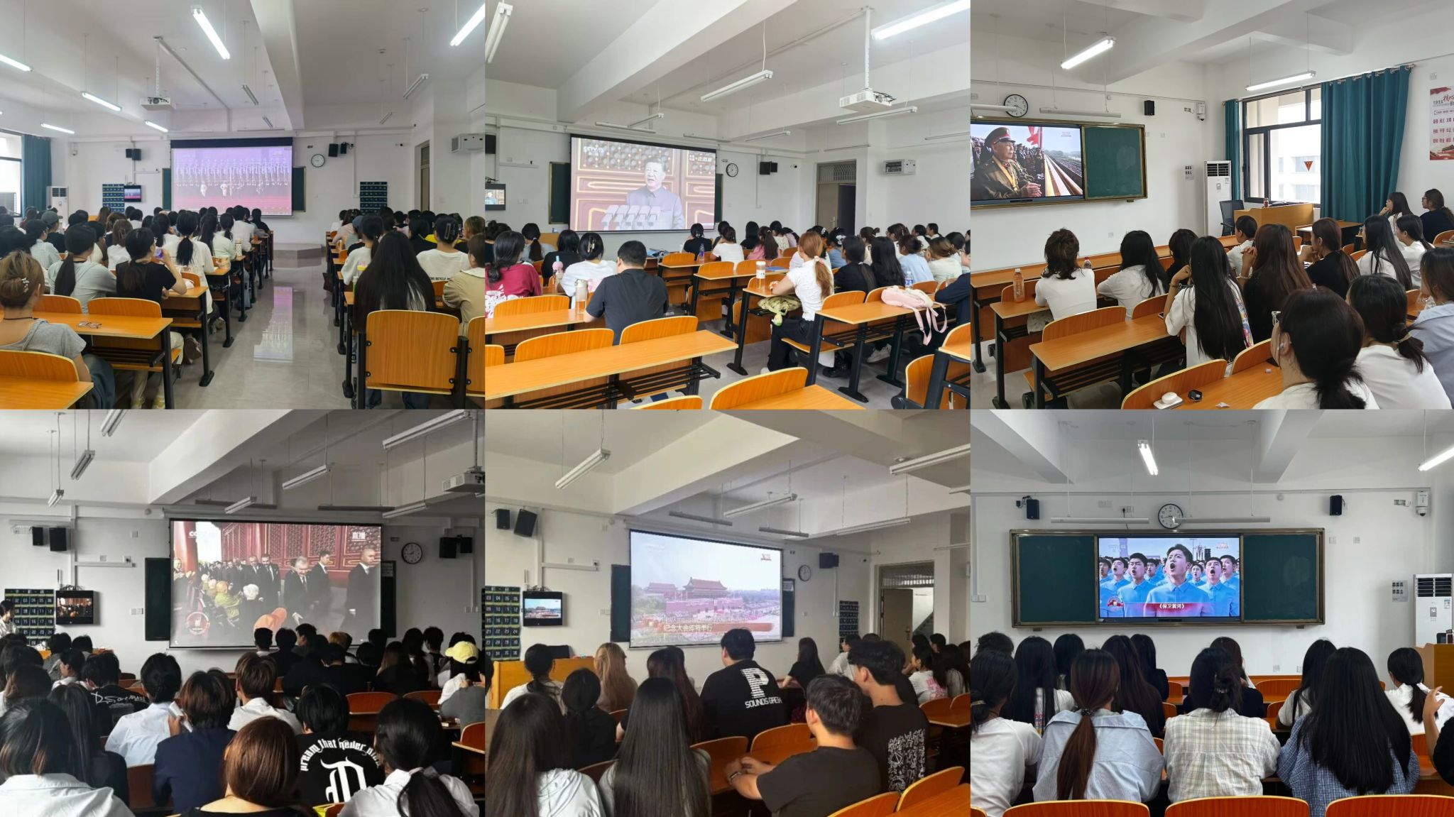 学院提前制定周密方案,从时间、场地到人员责任均做了详细安排,确保观看活动有序、高效开展。部分教职工在三楼会议室集中观看,2024级620余名在校生在任课教师带领下在多媒体教室集中观看。整个观看过程中,现场秩序井然,师生们着装整齐,神情庄重,全程保持安静,无随意走动、接打电话等情况。阅兵式结束后,各教学班开展了“强国复兴有我”主题微讨论,同学们踊跃发言,纷纷表示要传承和弘扬伟大抗战精神,踔厉奋发、勇毅前行,做合格的社会主义建设者和接班人。
