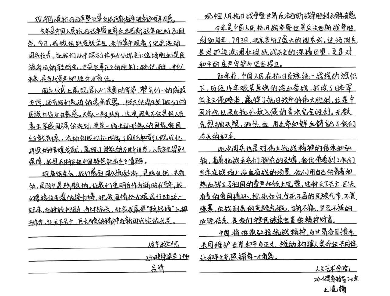 为纪念中国人民抗日战争暨世界反法西斯战争胜利80周年,深刻缅怀革命先烈,弘扬伟大抗战精神,9月3日上午,人文艺术学院按照学校统一部署,组织全体师生集中收看纪念中国人民抗日战争暨世界反法西斯战争胜利80周年大会。