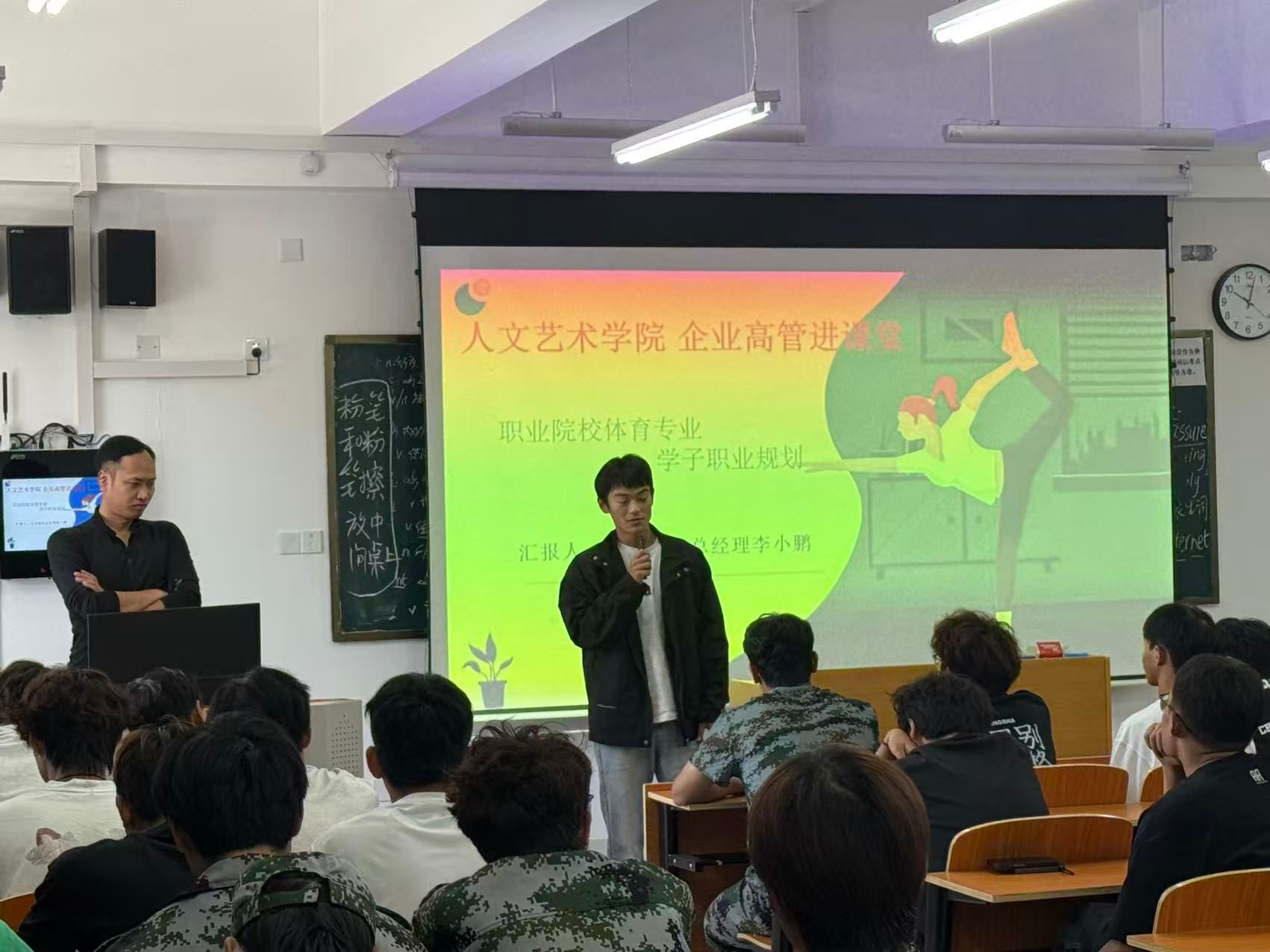 9月22日,致知楼10401教室,24级、25级健身指导专业全体学生参与“企业高管进课堂”活动,石头体育总经理李小鹏主讲,聚焦健身行业趋势与职业发展。