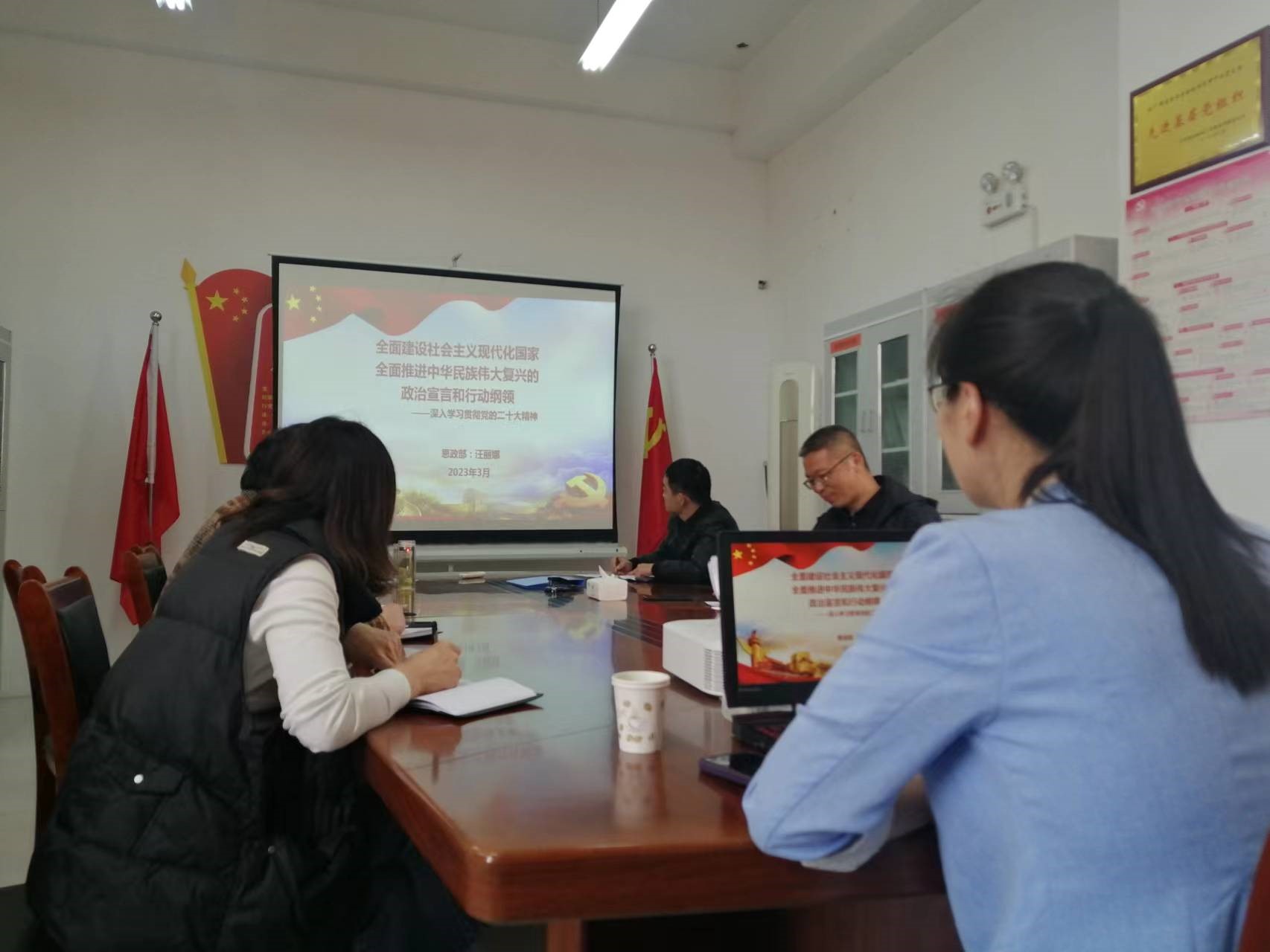为持续深入学习党的二十大精神,3月28日下午,食检中心党支部邀请学院党的二十大精神学习教育宣讲成员、思政部汪丽娜教师上党课。党课的主题为《全面建设社会主义现代化国家 全面推进中华民族伟大复兴的政治宣言和行动纲领—深入学习贯彻党的二十大精神》。活动由中心书记马勇主持,全体人员参加此次学习。
