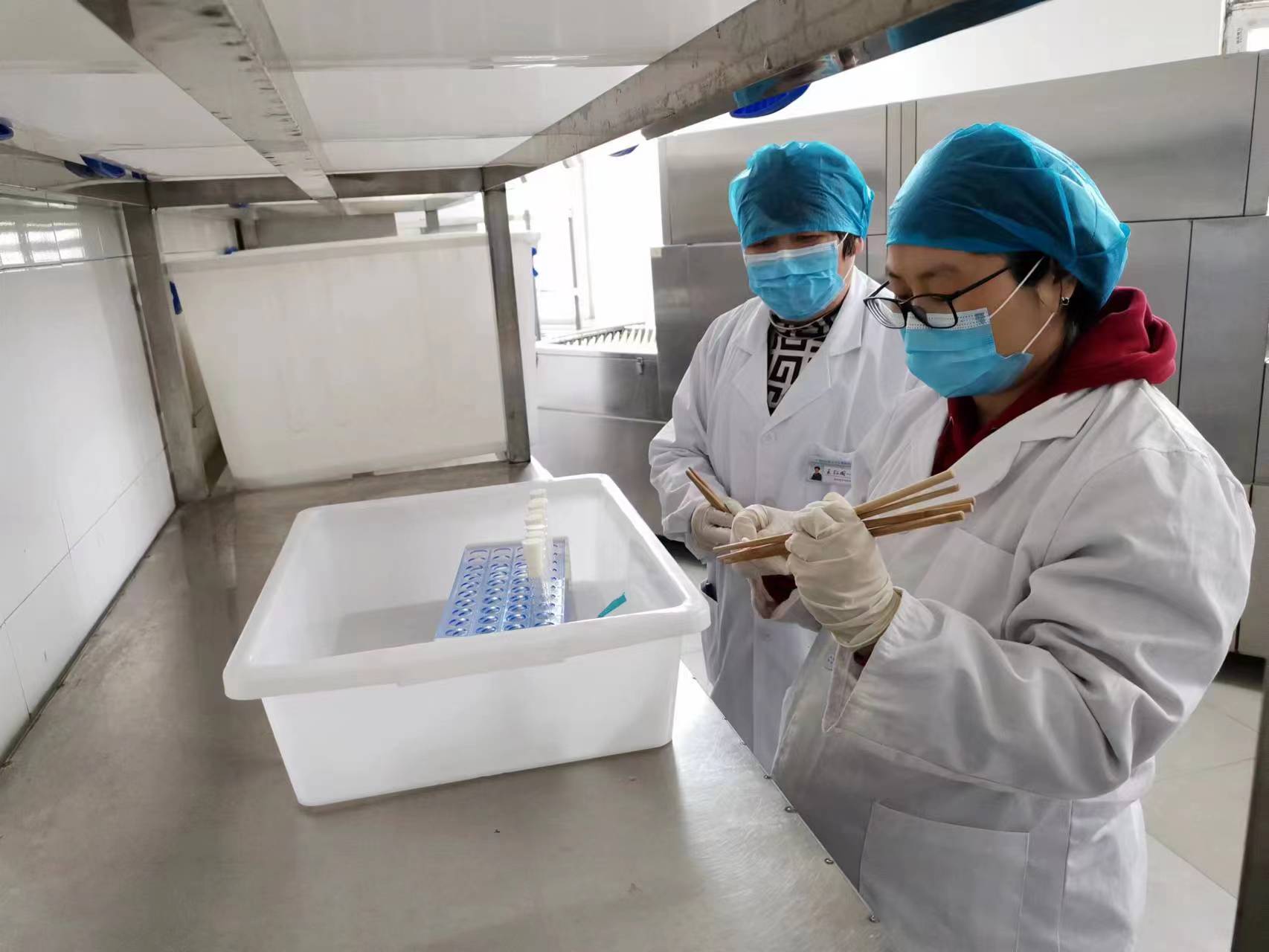 3月1日下午,食检中心检测人员先到食堂进行消毒餐具的取样,之后回到实验室进行后续检验操作。最终的检验结果表明,我校食堂所使用的消毒餐具在理化指标、微生物限量上均符合GB14934-2016《食品安全国家标准 消毒餐(饮)具》的要求。
