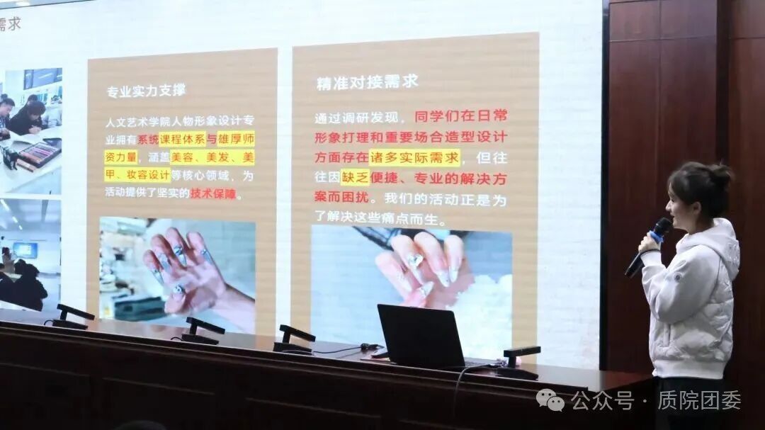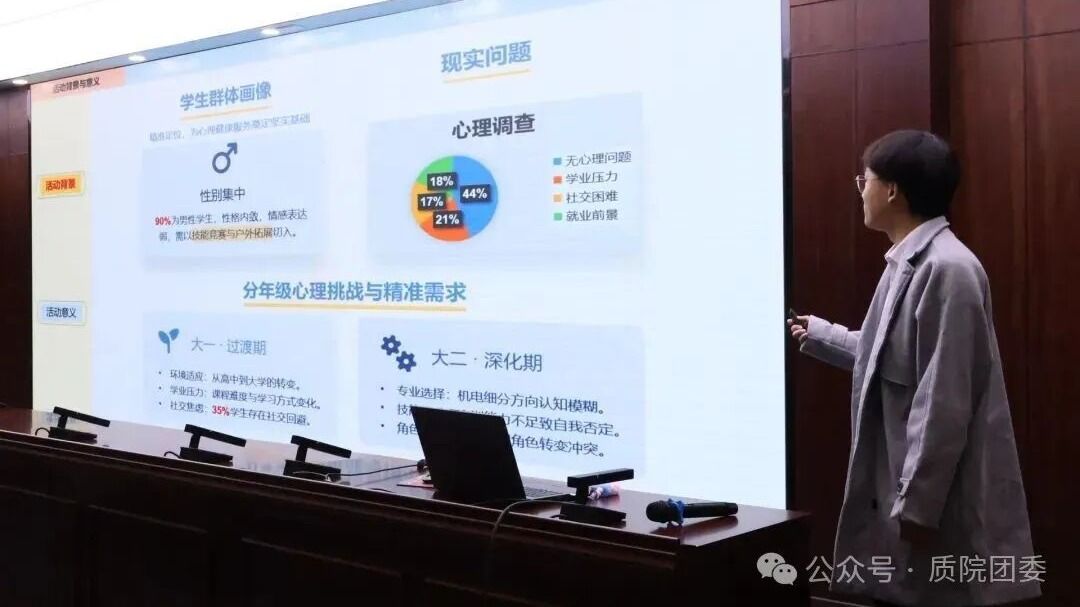 参赛学生们紧扣校园实际需求,聚焦权益保障、情绪关怀、生活服务、成长支持、文化建设等核心维度深耕细作。他们以成果汇报、案例讲解等多元形式,系统呈现项目的创新亮点、落地成效与发展蓝图,充分彰显了我校学子的责任担当,以及以创新思维、用实干行动为青春成长赋能。