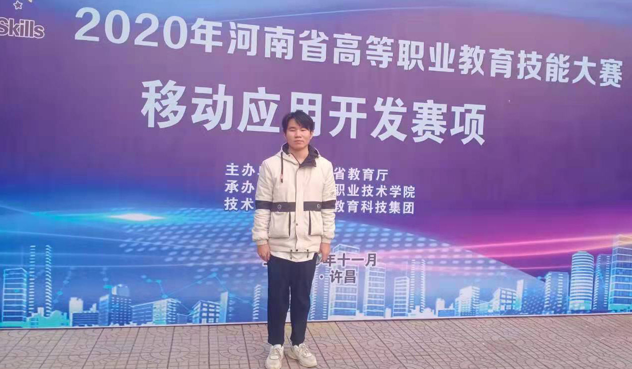 11月30日,在许昌职业技术学院由河南省教育厅主办的2020年河南省高等职业教育技能大赛移动应用开发赛项如期举行,来自全省42所院校的42支代表队参加了此次大赛。经过8个小时的激烈角逐,信息工程学院19级移动应用开发专业的陈映文同学以优异成绩荣获二等奖!