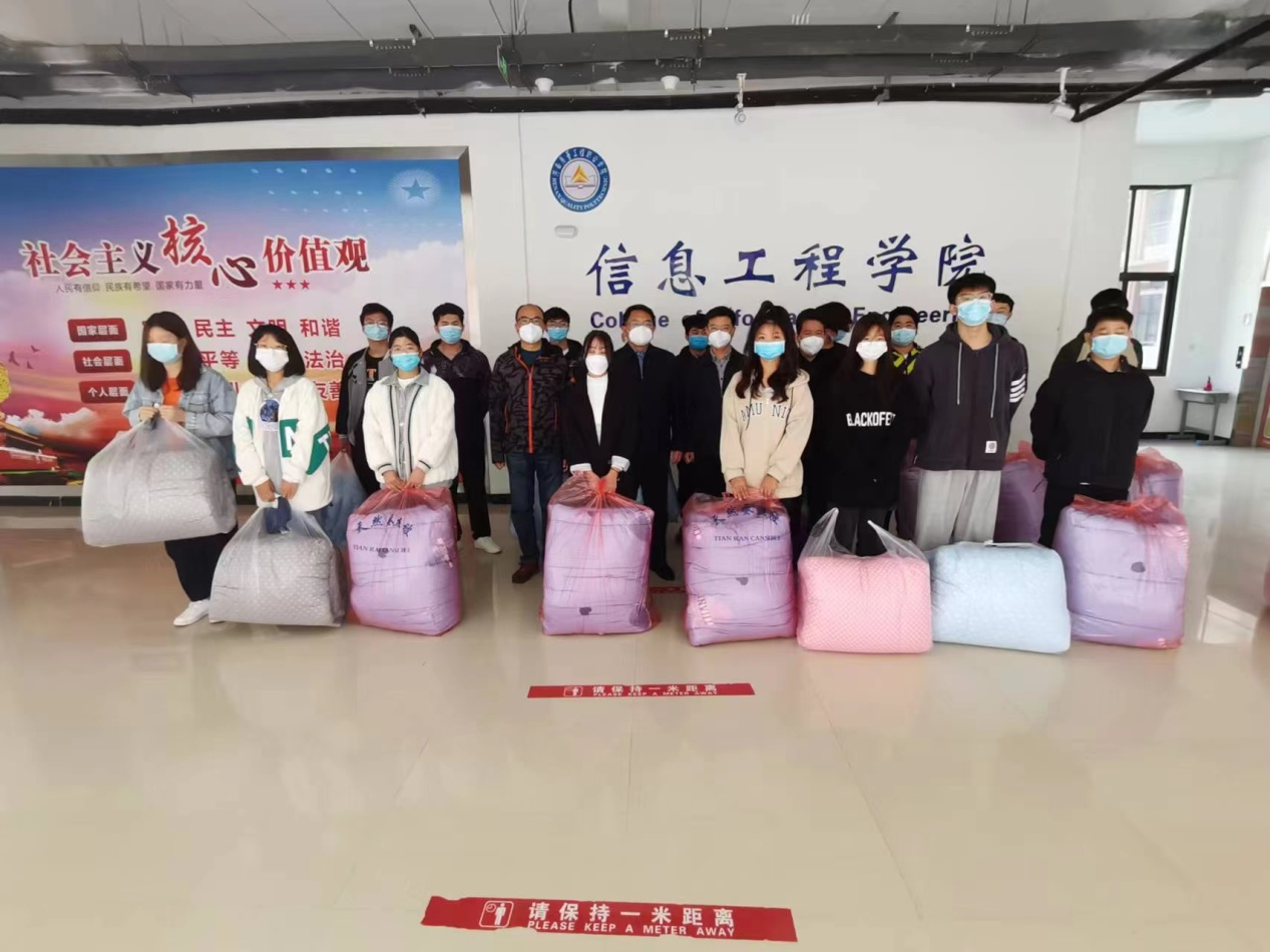 近日,学院党委副书记、工会主席姜葆亮带着爱心棉被和防疫物资到我院宝丰校区慰问汝州籍困难学生,并对信息工程学院疫情防控工作进行再要求、再部署。学院统战部部长赵起陪同。